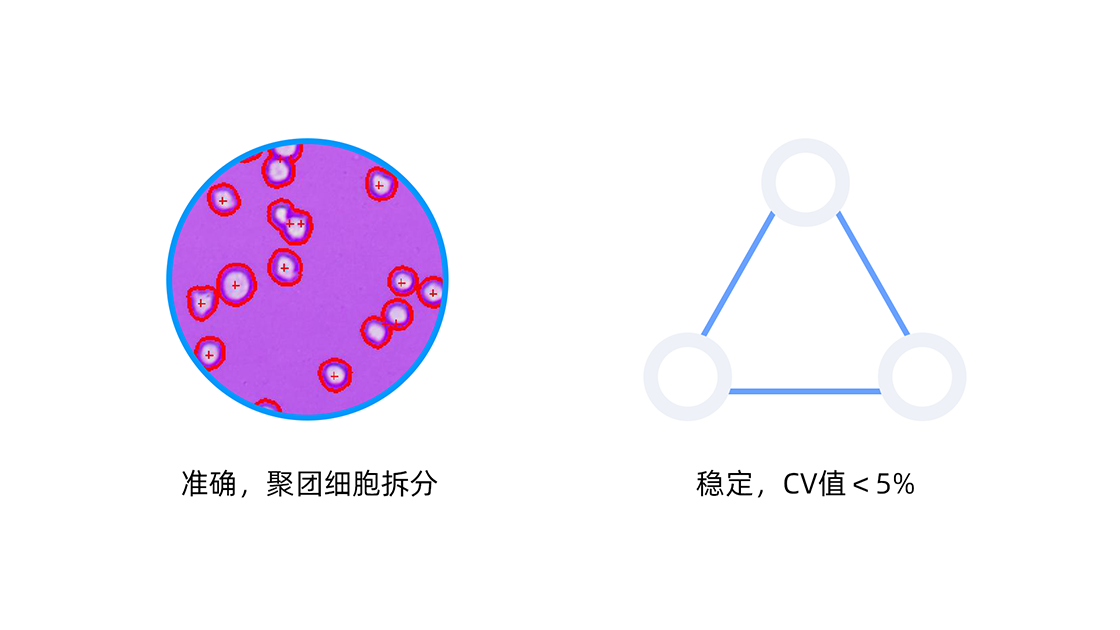 細胞計數是統計值,選購時要注意細胞計數儀的拍攝靶面數量,多靶面拍照統計計算,可降低誤差,計數結果更準確。