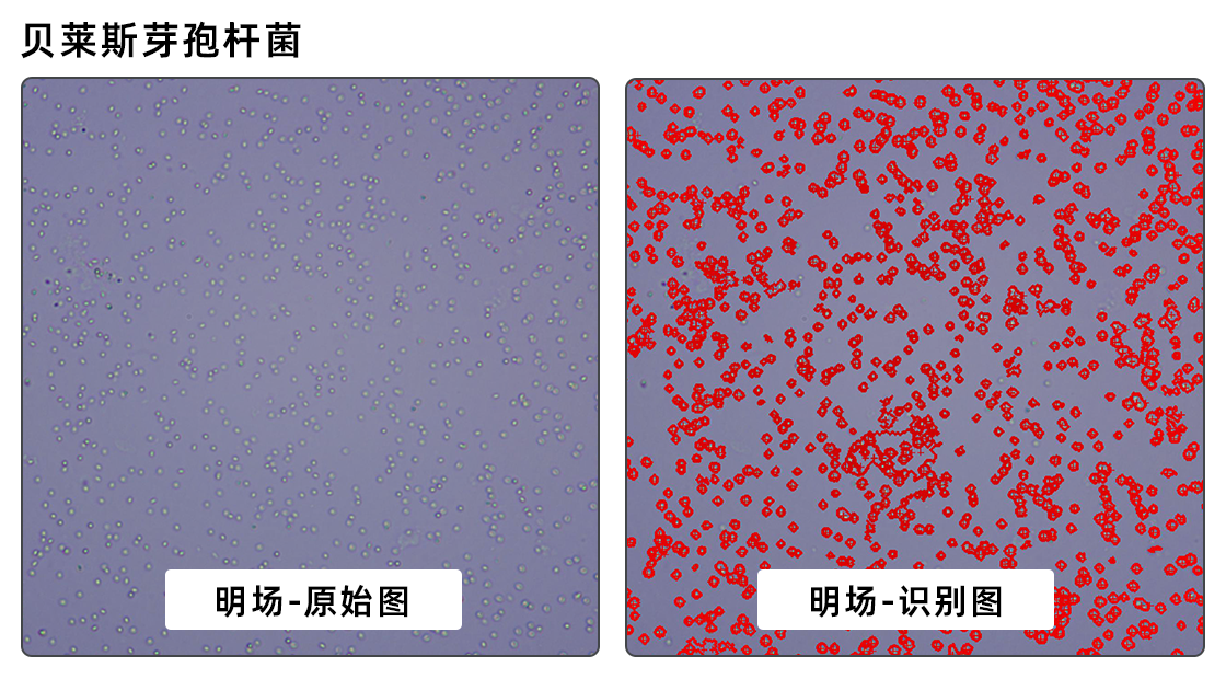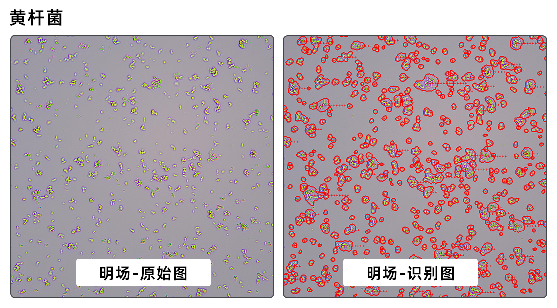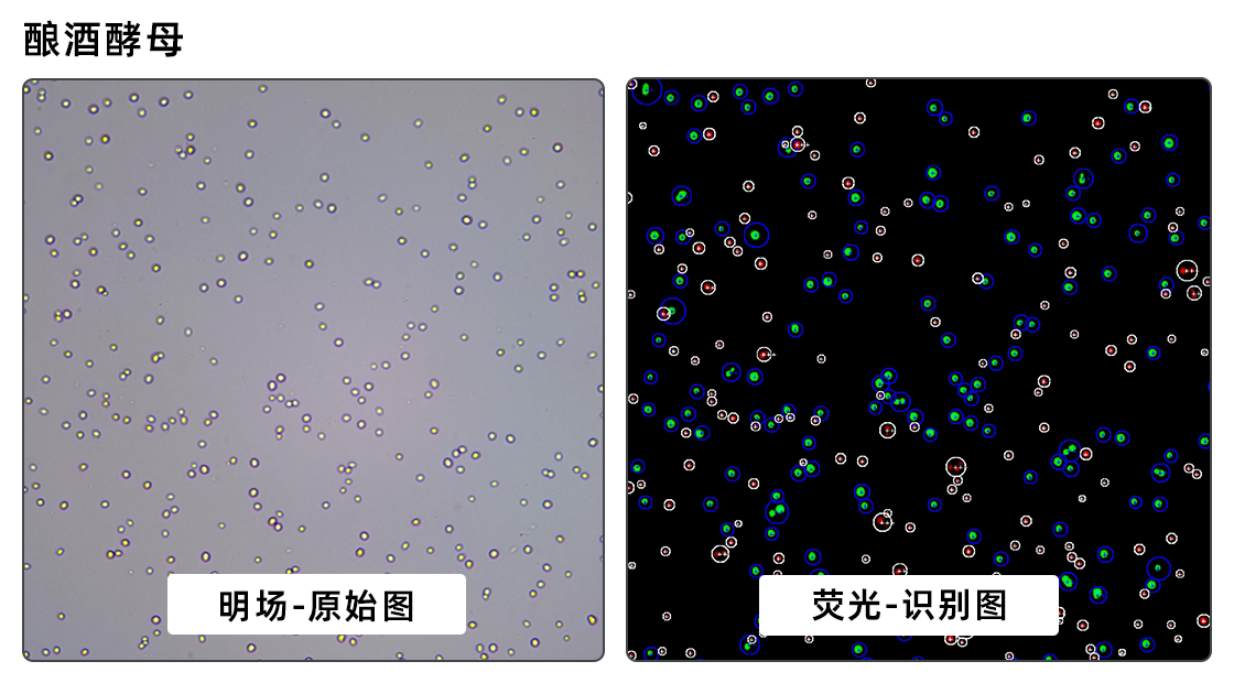 儀器配置明場+雙色熒光通道,采用熒光染色法計算活率,排除背景雜質對目標細胞的干擾,達到高效、直觀且精準的微生物細胞計數。